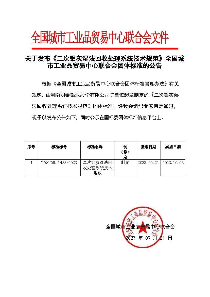 近日,由河南明泰鋁業(yè)股份有限公司牽頭編制的《二次鋁灰濕法回收處理系統(tǒng)技術(shù)規(guī)范》、《食品容器用再生鋁合金箔》2項團體標(biāo)準(zhǔn)順利通過專家評定,獲得批準(zhǔn)發(fā)布。這是公司以技術(shù)難點突破為手段,破解行業(yè)共性問題、推進鋁加工行業(yè)質(zhì)量提升建設(shè)所結(jié)出的最新碩果。